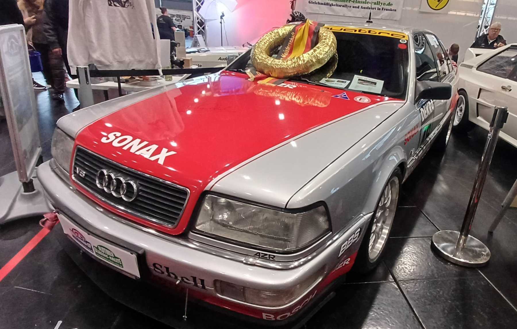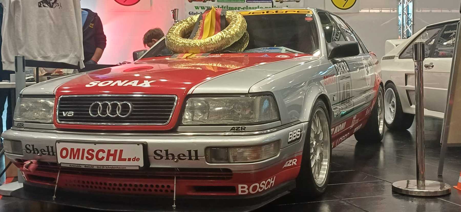 Die Retro Classics Bavaria in Nürnberg begeisterte am letzten Wochenende wieder mit einem ganz besonderen Highlight. Gemeinsam mit dem Veranstalter der bekannten fränkischen Oldtimer-Classic-Rallye-Serie wurden zahlreiche legendäre Audi-Boliden präsentiert. In der Halle 3C konnten die Besucher die lange Ingolstädter Rennsportgeschichte hautnah spüren. Es wurden Audi Quattro‘s aus sämtlichen Epochen und vielen Rennsportserien präsentiert. Das Aufgebot von umfasste diverse sehenswerte Fahrzeug aus der sehr langen „Audi-Rallyezeit“. Dort war die auch schon bei der Tour de Neuburg eingesetzte „Demuth-Replica“ mit der Startnummer 21 von Michael Schiegl zu bewundern. Aber auch Allrad-Boliden aus den Rallyecross- und Stockcarsport waren zu sehen. Die glorreiche DTM-Phase wurde durch eine silbern-rote Besonderheit – den „vereinsbekannten“ und natürlich perfekt vorbereiteten Audi V8 aus dem Hause Omischl – repräsentiert. Viele Fans der klassischen Motorsport-Technik und natürlich nicht wenige Audi-Enthusiasten bestaunten diese Sonderausstellung zum Thema „Audi und der Motorsport“.